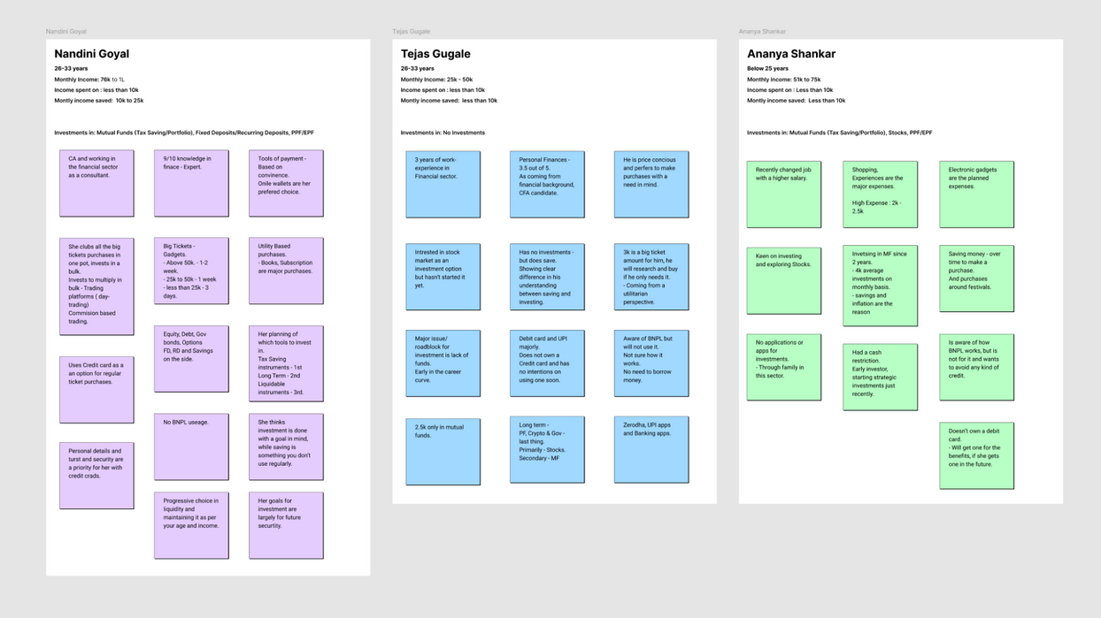 On the other hand, people below 27 found it hard to prioritize investing, preferring to spend on lifestyle needs. However, those aged 27-40 actively sought investment solutions and were willing to trust new platforms. This was the sweet-spot and this group became our primary audience, with others as secondary.